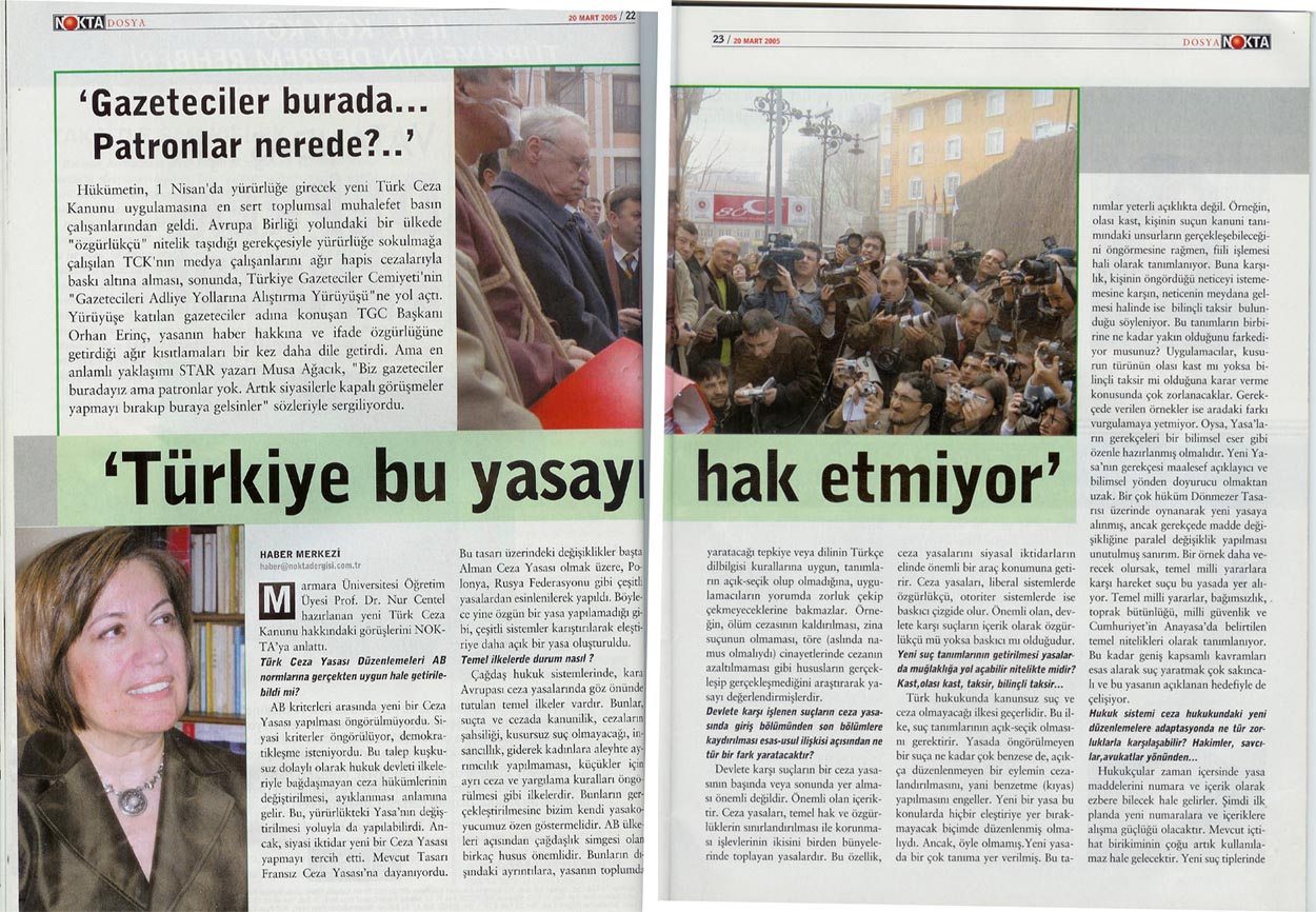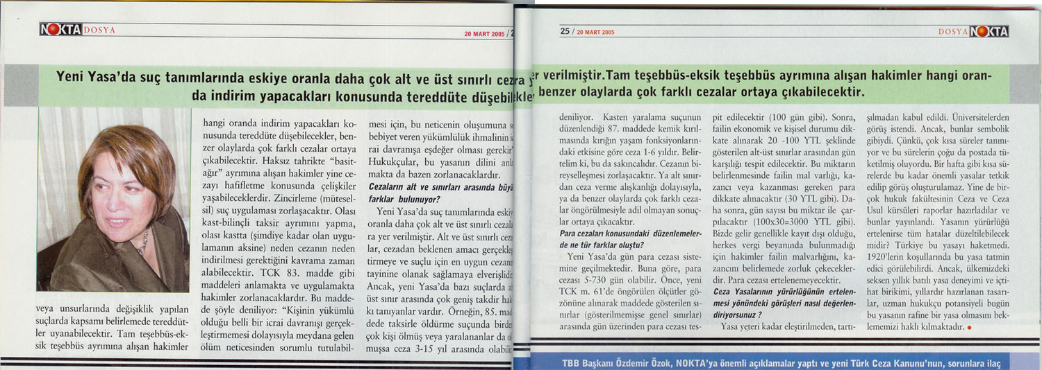- 15 Mart 2005 15.30 NTV-Yakın Plan. Konu: yeni Türk Ceza Yasası.